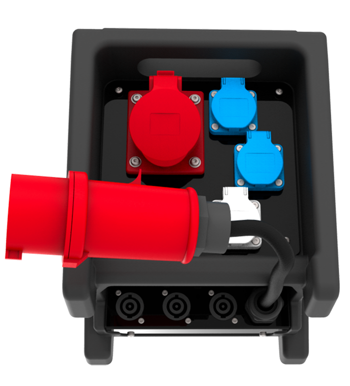 MINI CUBE triphasé 16A, protection disjoncteur différentiel 16A/3P+N, Courbe C – 30mA Distribution 3x16A monophasée* + 1 x 16A triphasée (12kW max.)MINI CUBE triphasé 32A, protection disjoncteur différentiel 32A/3P+N, Courbe C – 30mA Distribution 3x16A monophasée* + 1 x 32A triphasée (22kW max.)MINI CUBE triphasé 32A, protection interrupteur différentiel 40A/2P, 30mA Distribution 3x16A monophasée* + 1 x 32A triphasée (22kW max.)